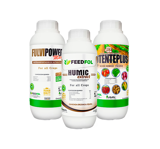 Las enmiendas líquidas en base a ácidos húmicos y fúlvicos, provenientes de leonardita. Tiene una excelente relación de las fracción húmica (largo plazo) y fúlvica (corto plazo).Es muy soluble en agua y es ideal para ser aplicado vía riego tecnificado.